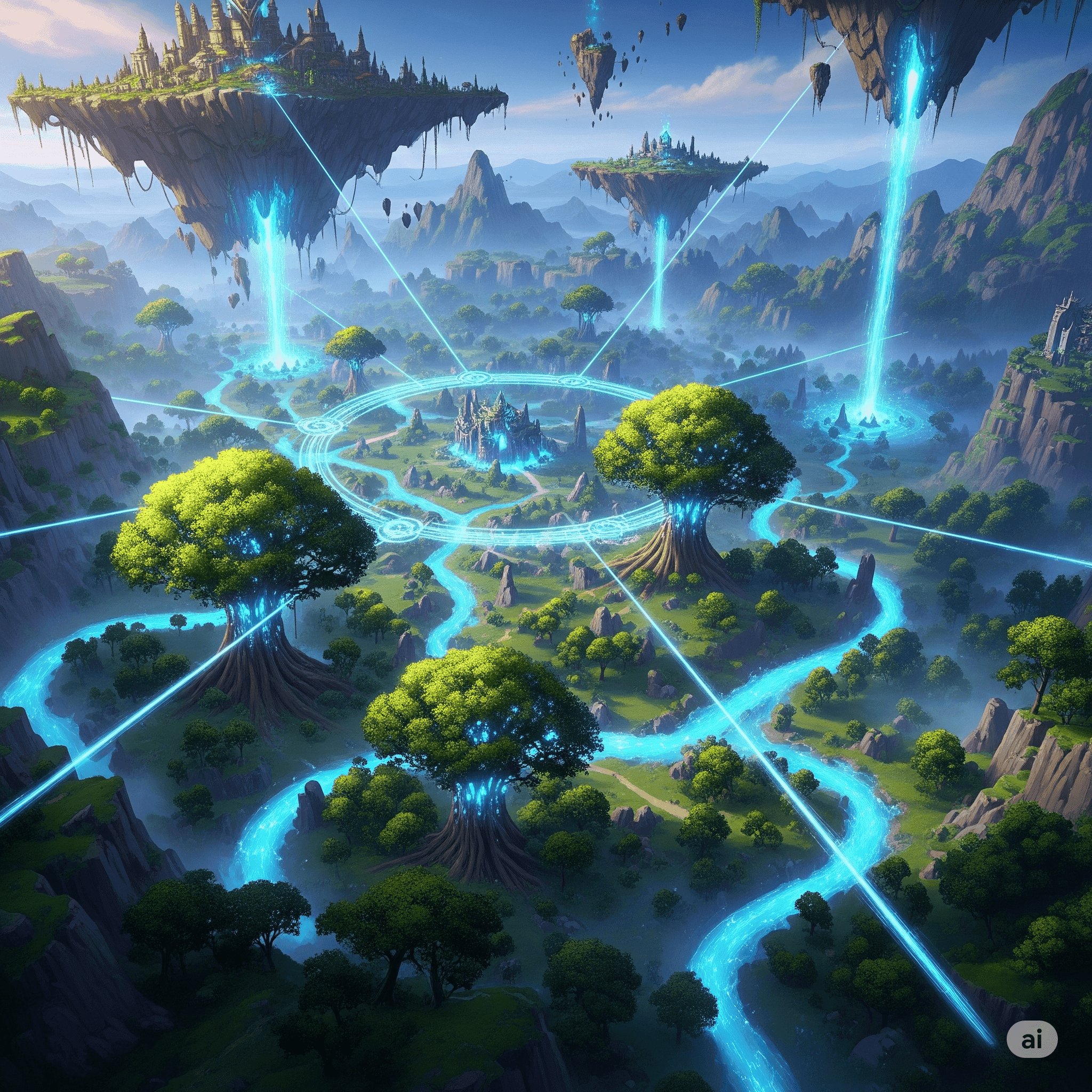 ormanlar, yüzen adalar ve mana nehirleriyle dolu büyülü bir kıta. Bu kıtadan dünyanın 4 bir yanına Ley