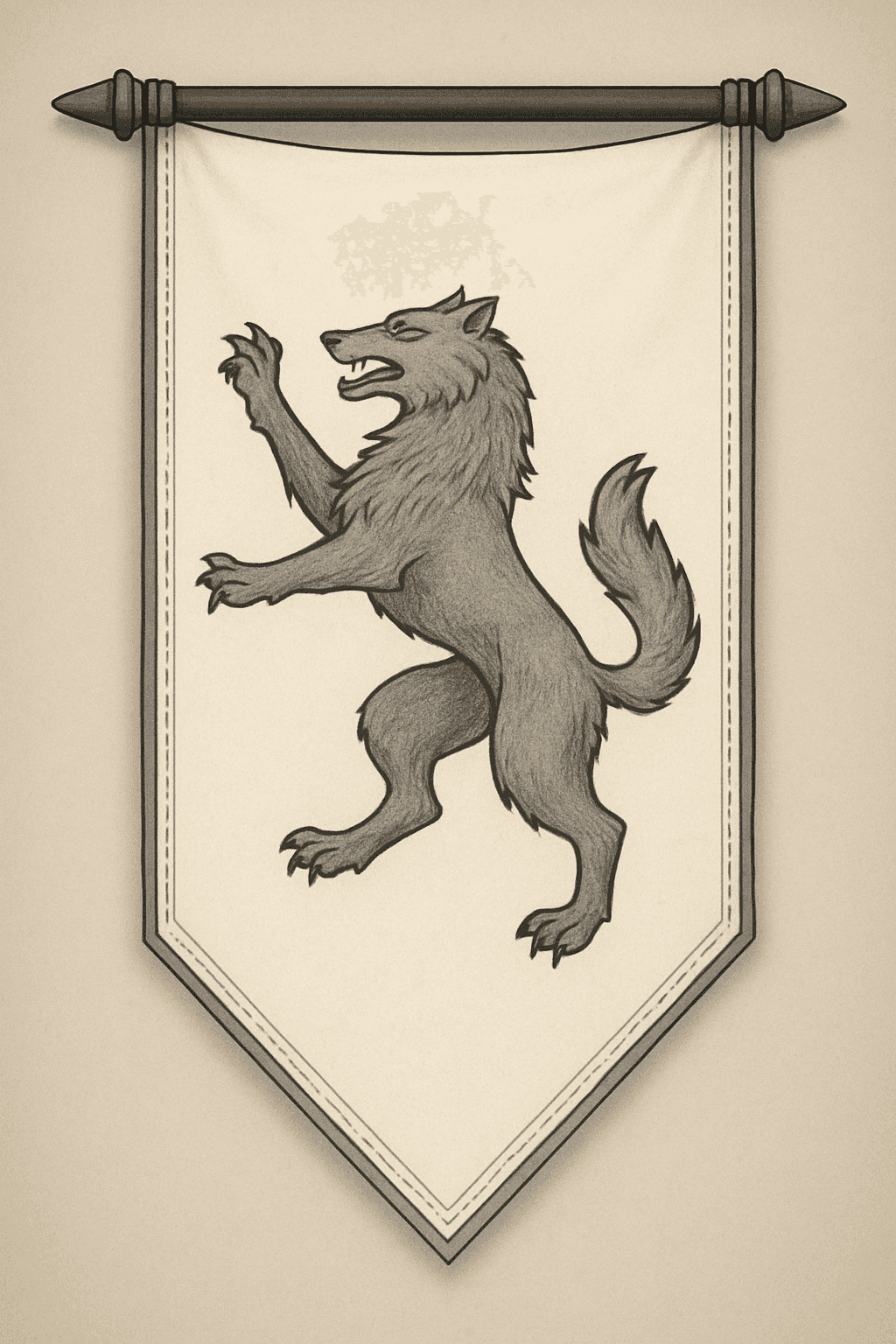 Kuzeyin sert muhafızları. Gri kürklü kurt armasına sahiptir.