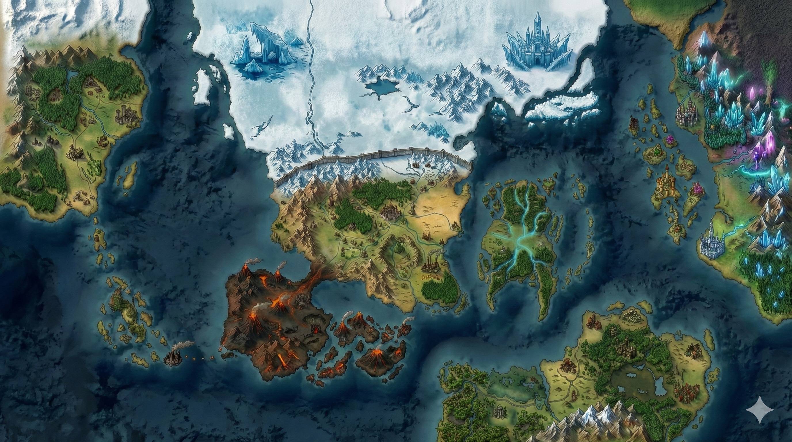 4 tarafı denizlerle çevrili bir adadır. Haritanın batısında ise Thalmyra, Zar'khal ve Sur'un ötesindeki